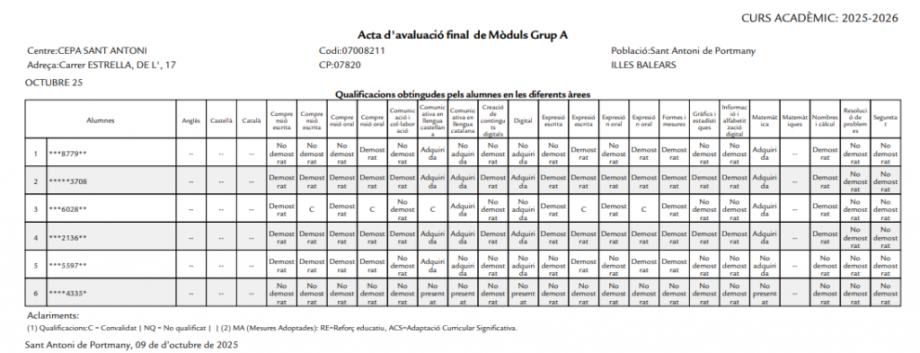 RESULTATS DEFINITIUS OCTUBRE 25